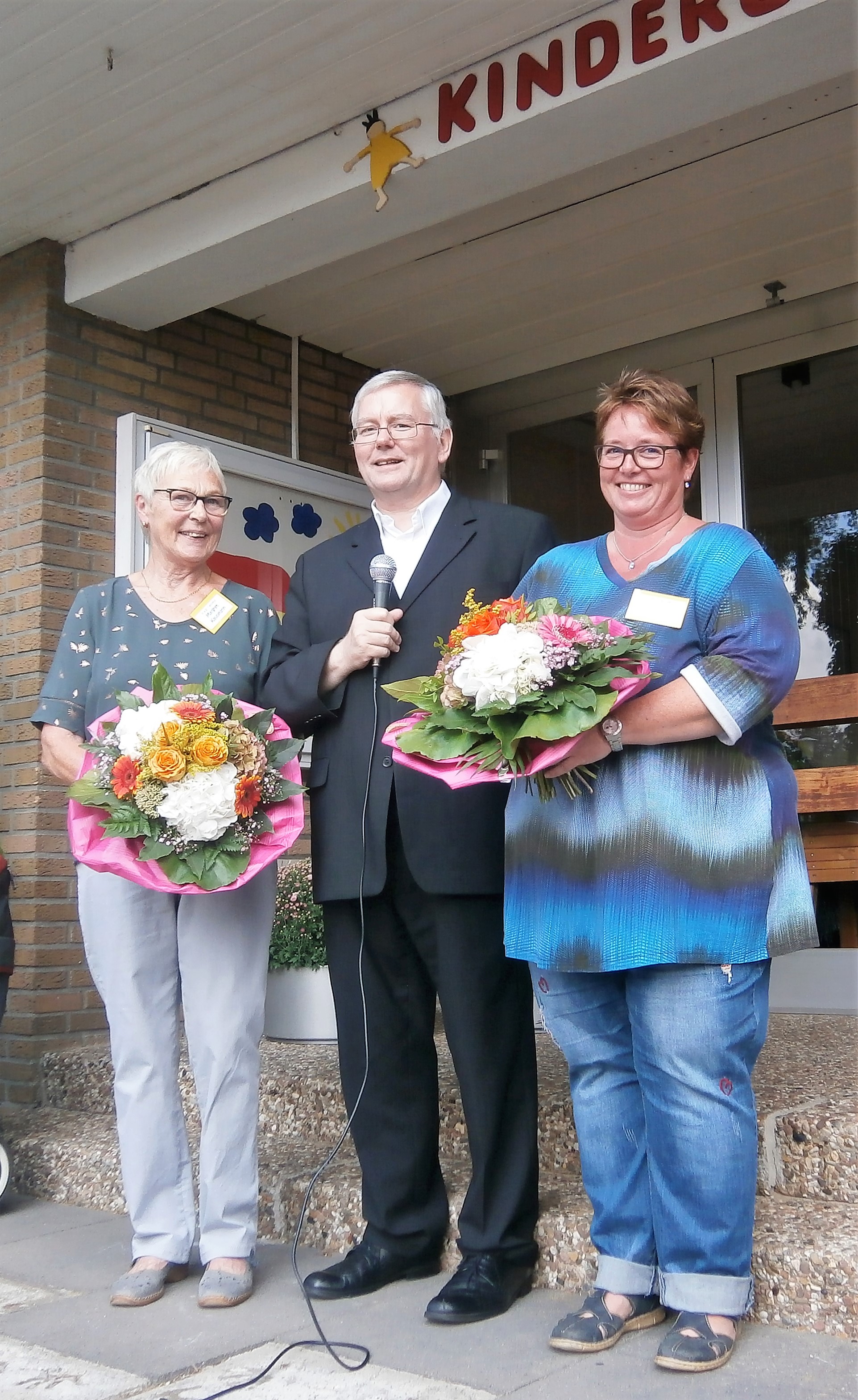 Des Weiteren wurde durch Pfarrer H. B. Kraienhorst stellvertretend auch für die Mitglieder des Kindertagesstättenausschusses unserer Kirchengemeinde die Gelegenheit genutzt, das „virtuelle Zepter“ von unserer langjährigen Leitung Margret Kaupmann an unsere neue Leitung Mechthild Drop zu übergeben.
