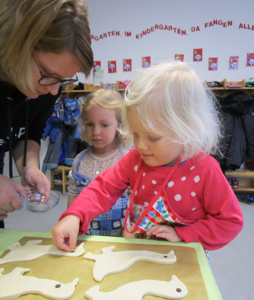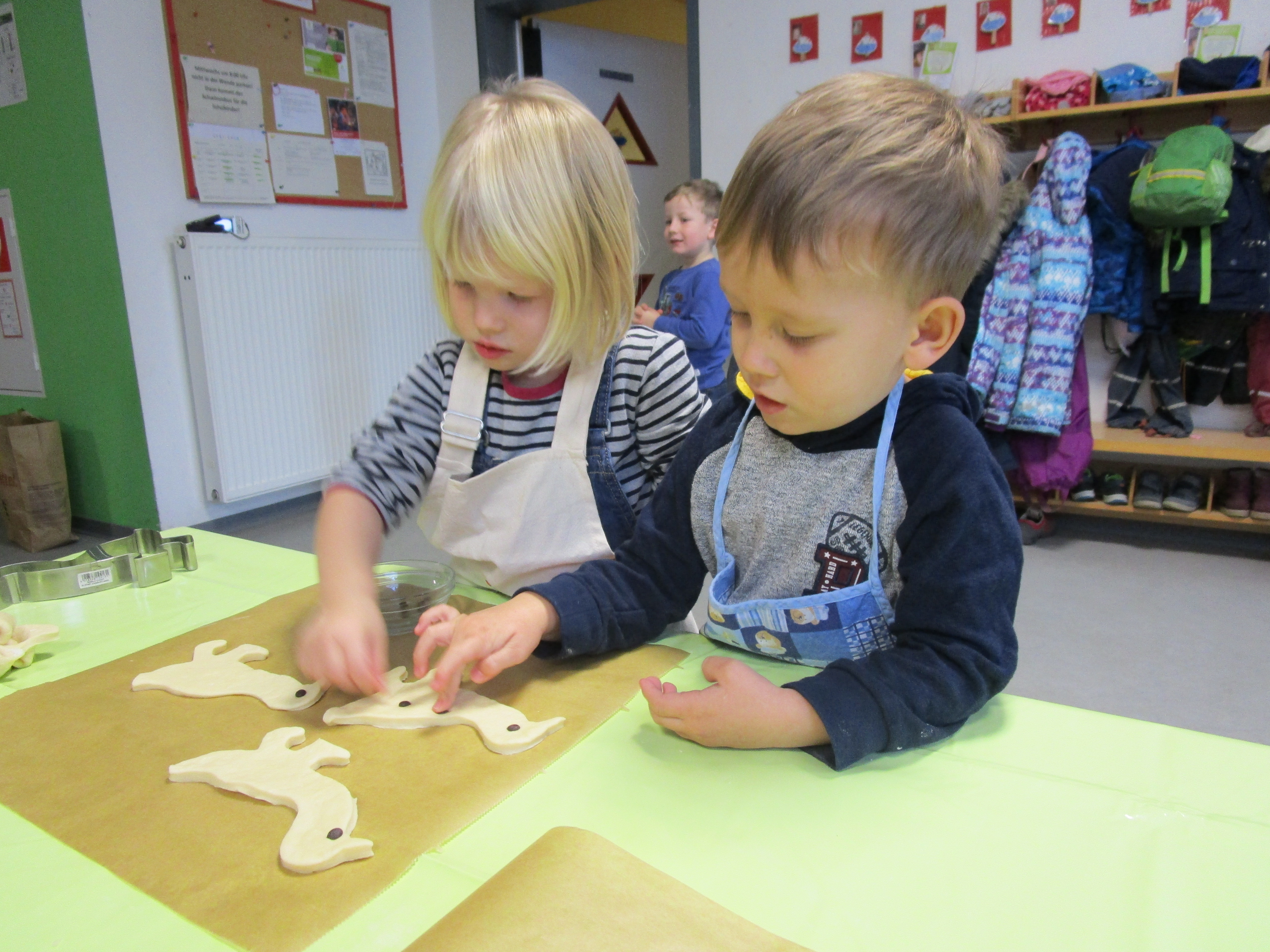 Wie in jedem Jahr trafen sich die Eltern zum traditionellen Gänse backen im Kindergarten. Die Kinder freuten sich schon auf diesen Morgen, denn sie durften helfen beim Ausrollen des Teiges, ausstechen und verzieren.