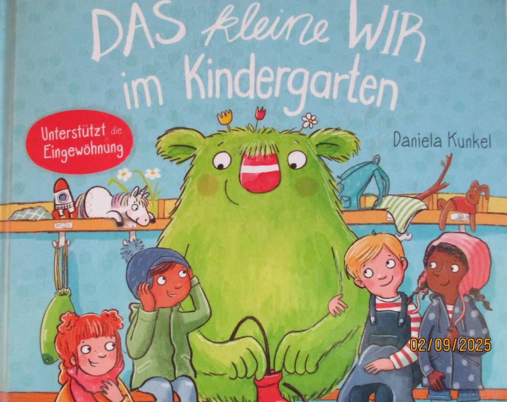 Das Bilderbuch: „Das kleine WIR im Kindergarten“ begleitet uns durch die erste Zeit. In der Gruppe gibt es sogar ein kleines Kuscheltier, was die Kinder sehr lieben. Wenn wir zusammen halten und nett zueinander sind, wird das „WIR“ ganz groß. Aber manchmal kann das „WIR“ auch ganz klein sein. Wenn es Streit oder Ärger gibt ist es nicht schön. Dann hilft viel Vertrauen, Mut und ein gutes Miteinander.