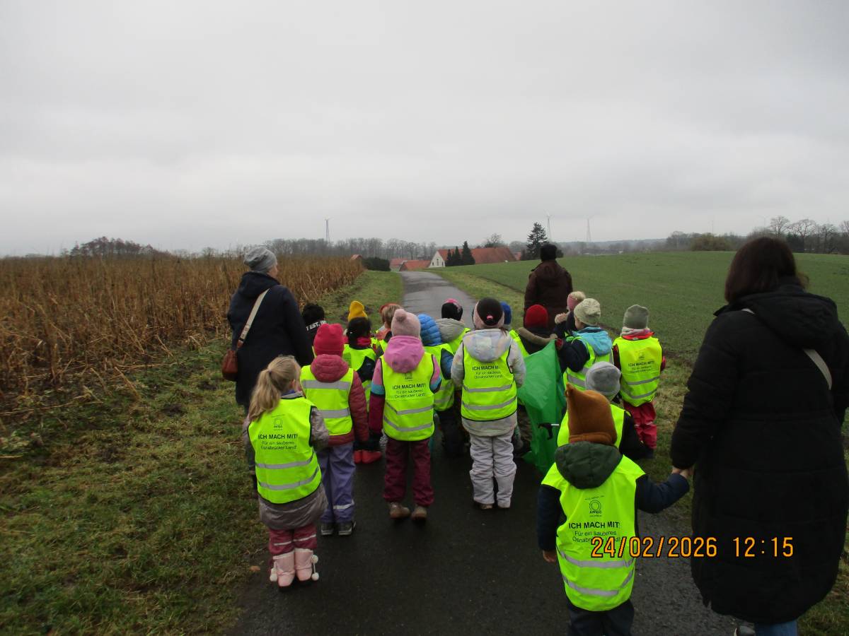 Im Rahmen der Aktion „Sauberer Wald“ des Landkreises Osnabrück beteiligte sich auch die Kita St. Hildegard an der Müllsammelaktion.